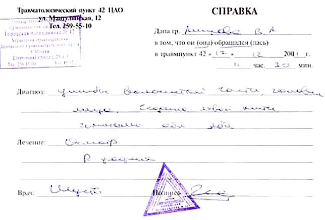 Предугадать, когда потребуется помощь травматолога невозможно. От ушибов и прочих травм никто не застрахован. Но чтобы получить после них онлайнпенсацию или облегчение труда, нужно предоставить справку от травматолога. Оформление медзаключения от травматолога у специалиста требует личного обращения и отнимает немало времени. Мы предлагаем купить справку от травматолога в Москве без лишних хлопот.